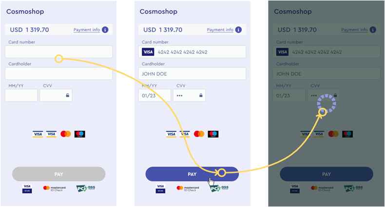 In some cases payment processing may require auxiliary procedures, such as authentication on the issuer's side. Generally, the need for such procedures depends on protocols and rules of payment providers and payment systems, but in some cases merchant's preferences can also be taken into account (these preferences should be discussed with maxaa Key Account Manager).