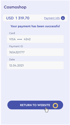 - Information about the result is displayed in the user interface on Payment Page itself or on the page to which the customer is redirected, according to the configuration.